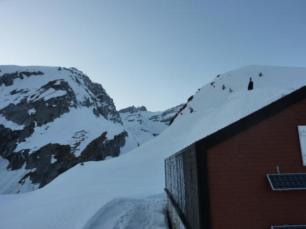 Grundsätzlich gute Bedingungen an diesem Tag. Durchgefroren ab Ringelspitzhütte (6:00 Uhr) bis unterhalb Couloir. Couloir um 8:30 durch Sonne im unteren Teil schon relativ weich, aber gut machbar.