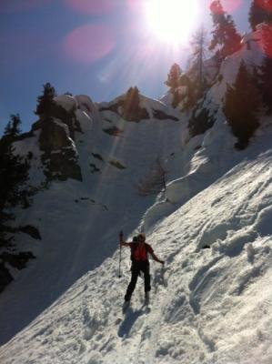 //Ab Skidepot bis Gipfel und retour: Die Couloirs in der SW-Rinne gut gefüllt, teils rechtes Gewühle notwendig, Steilheit durchweg 45Grad, durchgehend mit Steigeisen am Seil begangen, Sicherungsstangen sind im oberen Bereich vorhanden. Kletterstellen II problemlos mit Steigeisen machbar (ungesichert für den Seilletzten), Wir hatten null Akklimatisation, die Höhe schlug uns ziemlich auf den Puls. Zeitbedarf 2.5+2h