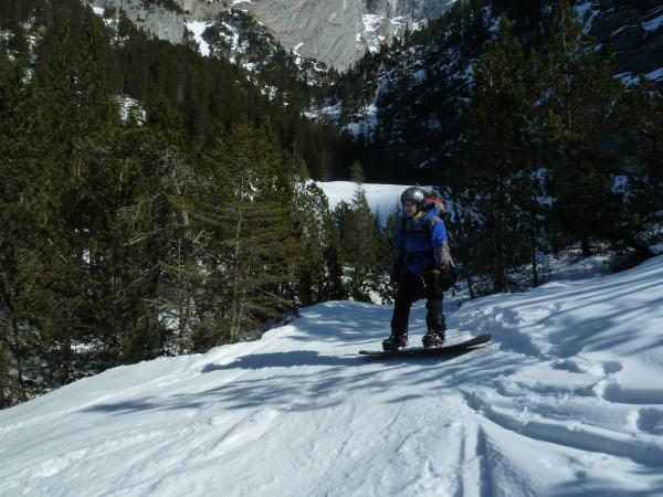 Abfahrt mit Snowboard vom Gipfel heute um 12 Uhr grad richtig.