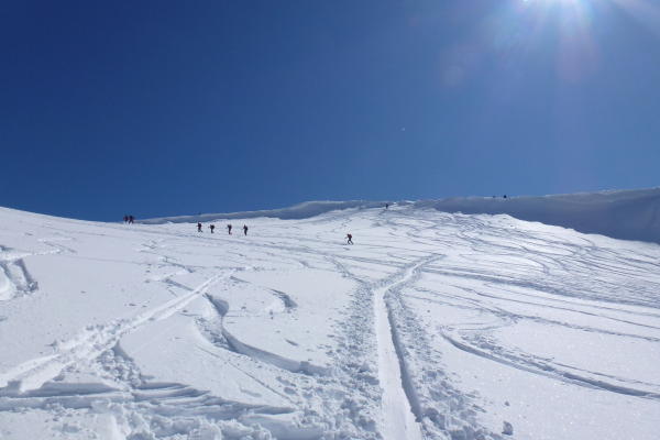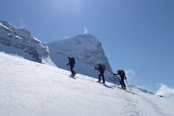 besser zu warten 2-3 tage warmwetter fur gute firnsich. Ausgangspunkt etwa 1m schnee in Simplon.