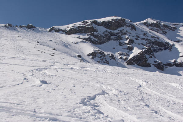 Nach evt. Neuschneefällen kritisch zu beurteilen! Lange relativ steile Flanke.