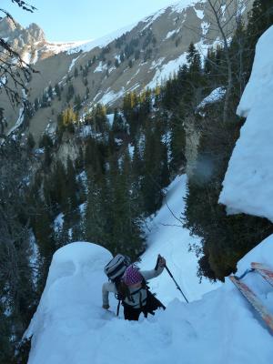 Auf Wanderweg Schi tragen bis 1400m. Danach gut Schnee. Tiptope Spur durch den Wald zwischen 1600 bis 1800. Traumhafter Sulz im Oberste Gurbs. Pulver vom Gipfel bis Bütschi.