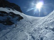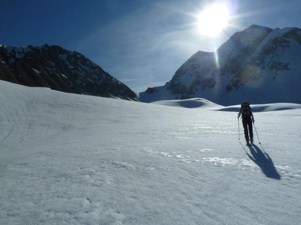 Endlich mal ein Anstieg im Gurbstal. Super schön und einsam. Aufstieg Nordflanke ging tiptop mit Harschteisen. Steigeisen blieben im Rucksack.