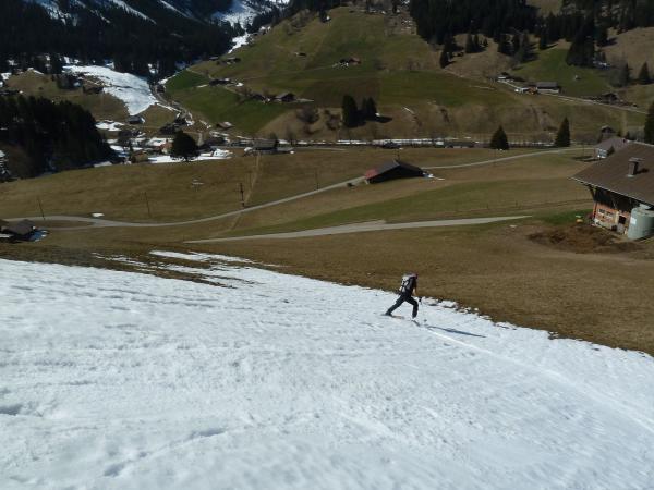 Bei Abfahrt westlich Gurbsbach kommt man bis auf ca. 1300m noch mit Schi durch.