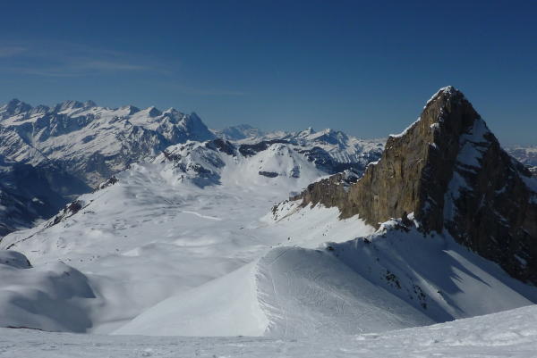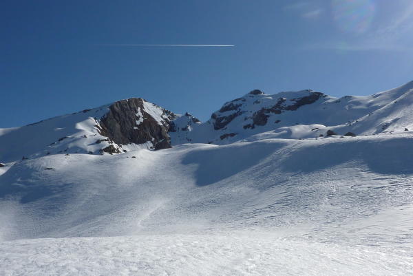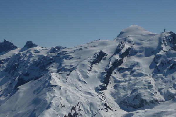 Abfahrtsbedingungen sehr gut: oben Sulz, in den Schattenhängen toller Pulver, weiter unten ein Sülzli zum Schwärmen.