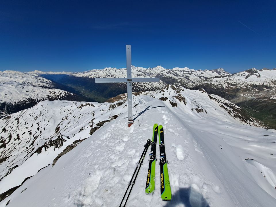Danach mit Ski aufs Gross Muttenhorn nur kurz 10hm unter Grat ski abgeschnallt und rest bis Gipfel gefellt.