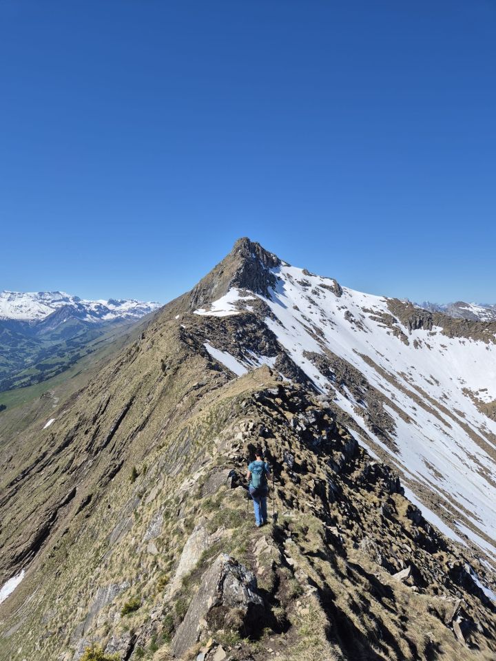 Es hat nur noch ein paar kleine Schneefelder, welche man problemlos umgehen kann. Abstieg vom Mäggisserehore steil runter nach Frutigen (bei Nässe nicht empfehlenswert).