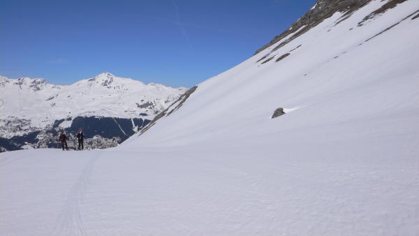 Abfahrt entlang der Aufstiegsroute, die Südhange waren herrlich aufgesulzt.