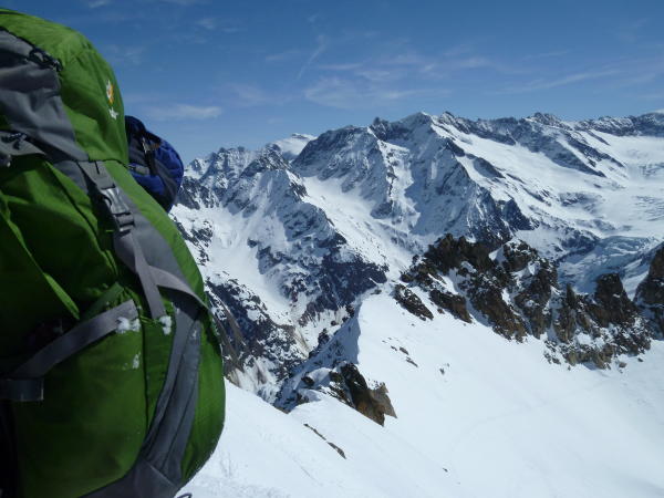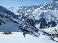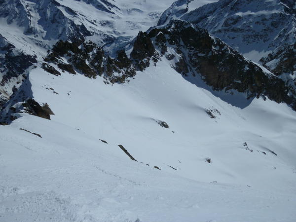 Um ca 11.00 Uhr, auf 2600m - 2750m, Schnee zum aufsteigen mühsam. Zu weich für Eisen und zu hart um das die Felle richtig greifen.
