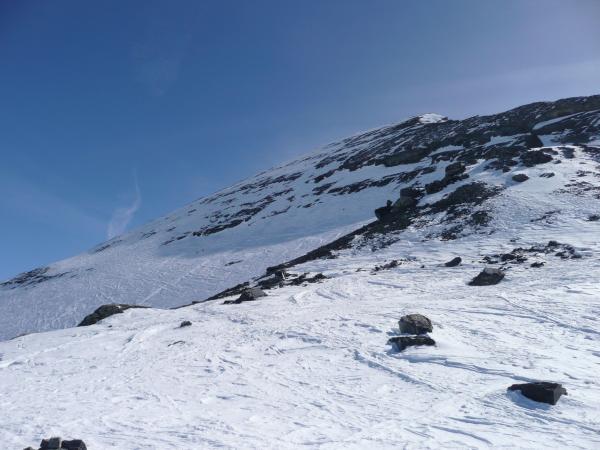 Da die Hauptflanke erst sehr spät auffirnt, braucht man im Aufstieg nicht hetzen.