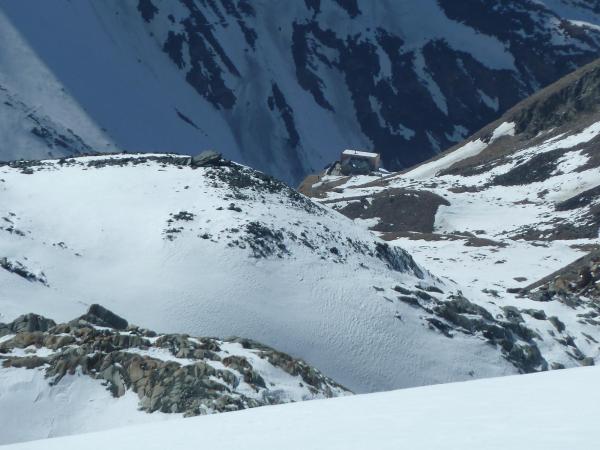 Gletscher gut eingeschneit. An exponierten Stellen aber oft blankgefegt vom Wind.