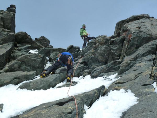 Letzte 150hm auf Gipfel schrecken anfänglich mit viel Blankeis ab. Die Stellen können jedoch im Fels umgangen werden. Man braucht entsprechend etwas länger Zeit...