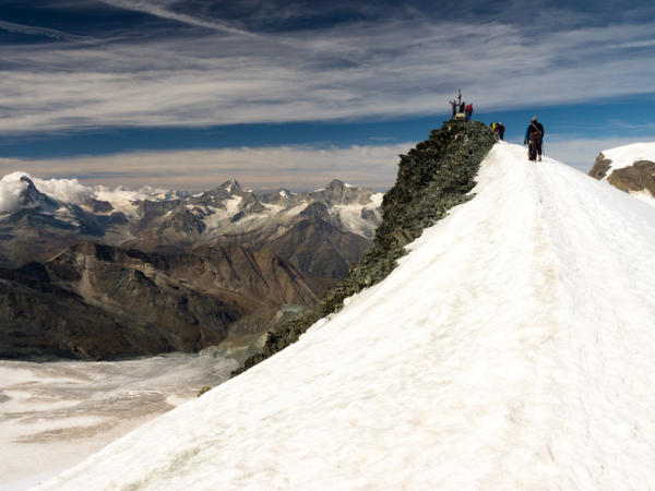 Gute Schnee- und Gletscherverhältnisse. Spalten gut sichtbar beim Aufstieg aber Aufmerksamkeit ist nötig beim Abstieg als einige Spalten nicht von oben sichtbar sind!