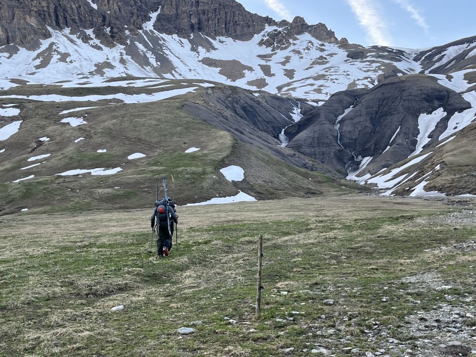 Spät ‘im Saison’ versucht wegen offener Strasse. Bis 2400 nur Stellenweise Schnee. Dennoch vor allem beim Abfahrt Schneestreife bis fast ganz unten. Grat nicht benutzt wegen Schneemangel und das Auto bei 2111m gestellt und über den NW hang hoch. Grat bei 2700m überschritten und nachher 2 mahl kurz Ski tragen. Letzte ~100hm 40grad hang zu Fuss hoch und Skifahrt runter ging gut trotz Felsinsel. Sehr schönes und weites Panorama. Abfahrt um 0930 war gut. Achtung durchfeuchtung und einsinken später.