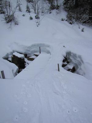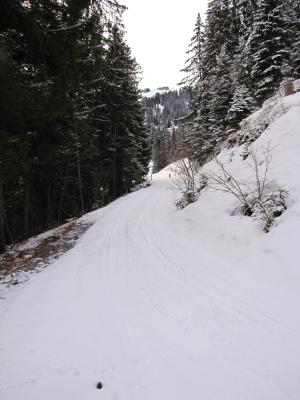Die ersten Meter müssen gelaufen werden...oder man fährt mit dem Auto über die Brücke bis zum kleinen Steinbruch. Von dort an hat man direkten Anschluss au den Schnee..:-)