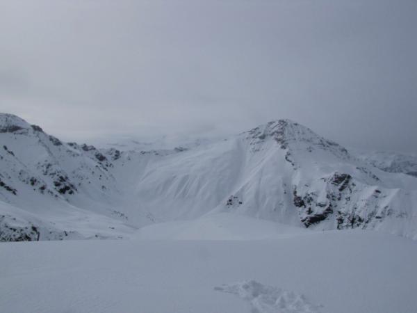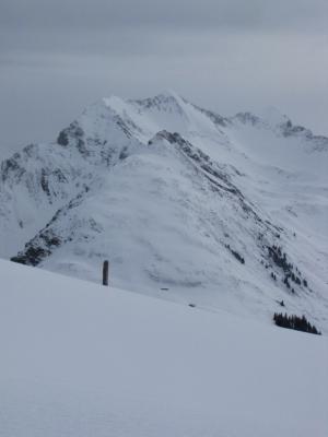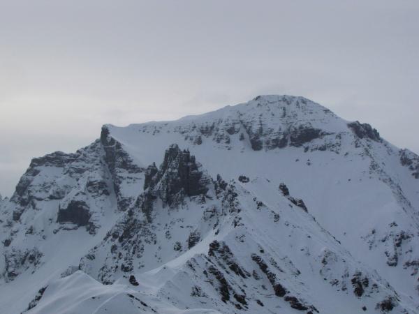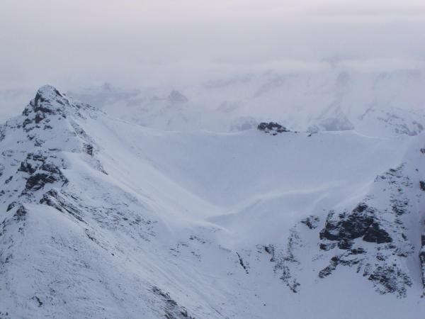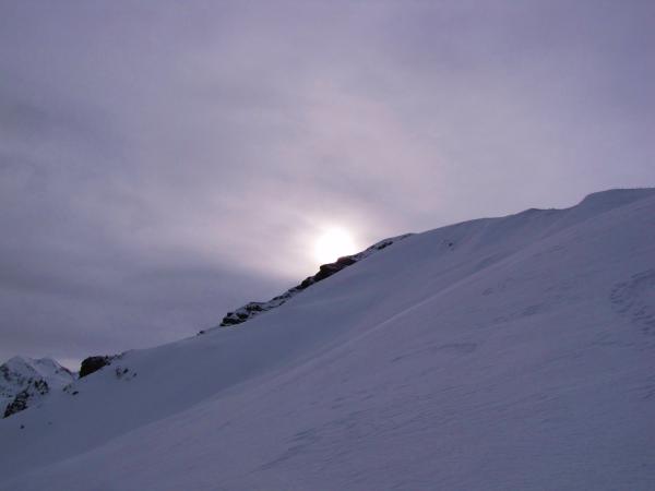 Unten ca. 5cm Neuschnee auf harter Unterlage. Je weiter oben bis max 20cm Neuschnee. Gipfelschulter wie gewohnt etwas abgeblasen.