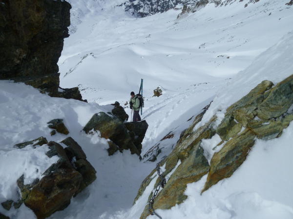 Ski tragen von 1908-2000m, Turtmanngletscher im unteren Bereich grosse gut sichtbare Spalten.