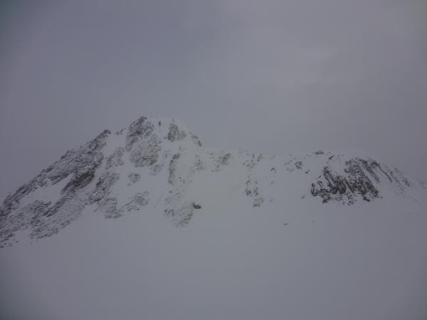 Keine offenen Spalten gesehen. Gletscher gut eingeschneit. Nebel und Schneefall. Sicht schlecht.