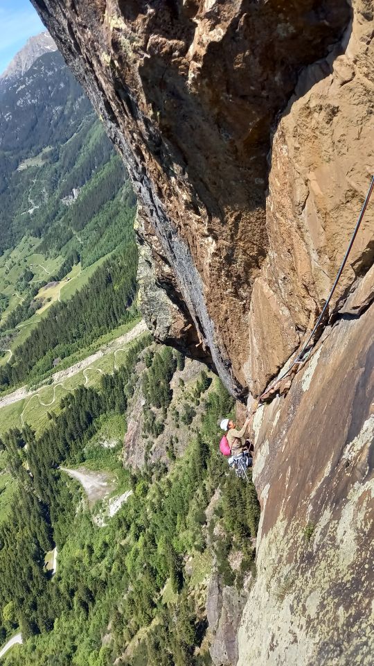 Die Route verdient unbedingt mehr Begehungen (ca 10-20 in den letzten 20 Jahren): bestens eingerichtet, aufwändig von instabilen Blöcken befreit. Dann hats auch weniger Flechten auf den Tritten. Hoffentlich bringt der neue CH extrem West mehr Leute in die Wand!