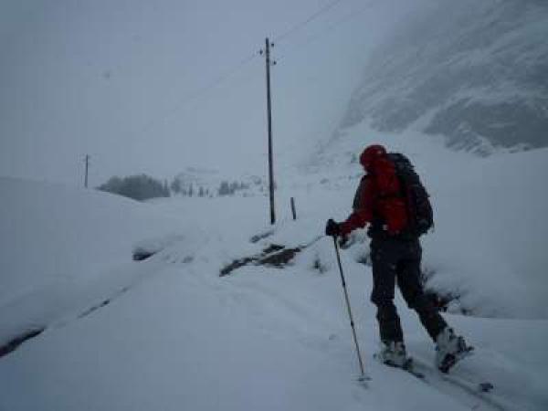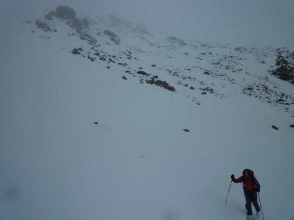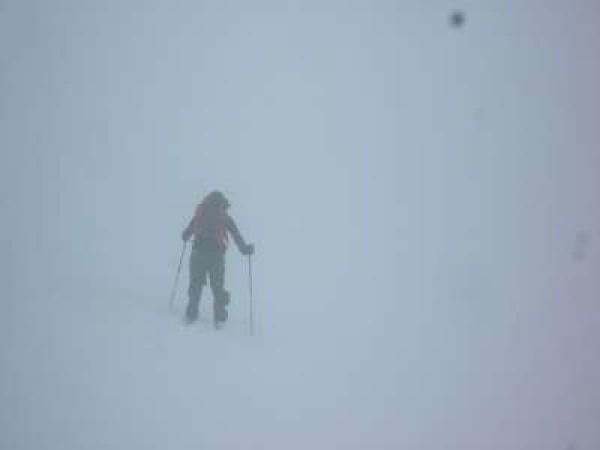 Heut null Sicht, die ganze Strecke gespurt, nur nach Karte und Kompass gelaufen und entsprechend wenig Spaß bei der Abfahrt gehabt.
