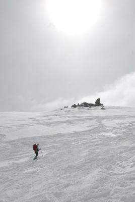 Weiterweg bis zum Hauptgipfel augenscheinlich komplett im Schnee zu machen, Spuren sind erkennbar.