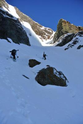 Steigeisen und Pickel für das Couloir sehr nützlich.