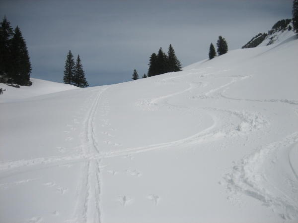 Bis Höhe Saluveralpe Sulz, ab da ca. 10 cm Pulver auf tragendem Untergrund. Zu fahren wie auf dem feinsten Teppich.