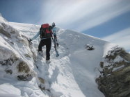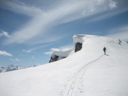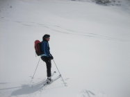 Rechts weiter über schöne Talböden zu einem Sattel links der Mellenköpfe, über einen kurzen Rücken auf das Gipfelplateau und Flach bis zum Gipfel. Kurze Abfahrt zurück zum Sattel, dann Aufstieg auf Mellenköpfe. Dann Abfahrt wie Aufstieg.