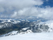 viel wind und viel schnee in der gegend! massenhaft eingeblasen in den nordhängen, momentan von alp grimmi an aufwärts noch trockener pulver, gipfelhang griffig und pulvertaschen/zastrugis. abfahrt defensiv mit kurzem abstecher in nordflanke, liegen aber wirklich mächtige triebschneemassen... noch fahrbar bis steinbruch 1300m, drei apere stellen auf dem weg lassen sich noch ohne skiabziehen umgehen.