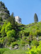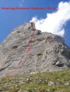 Für Hardmover gibt es noch eine interessante Route am Parallelpfeiler weiter nach O im oberen Teil (2 SL 7a), Die Absicherung ist sehr eng und er Fels sieht perfekt aus.
