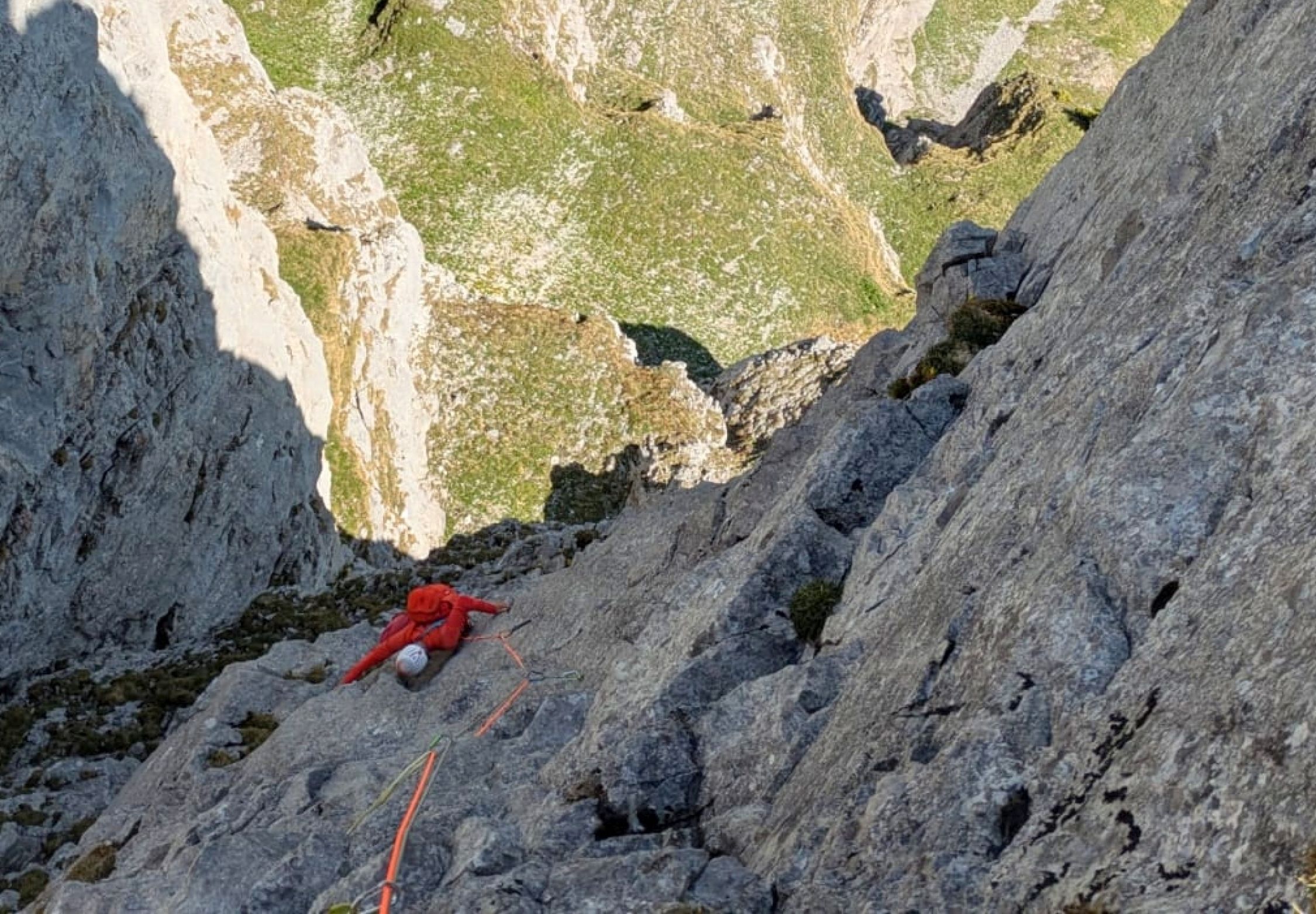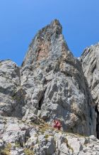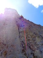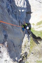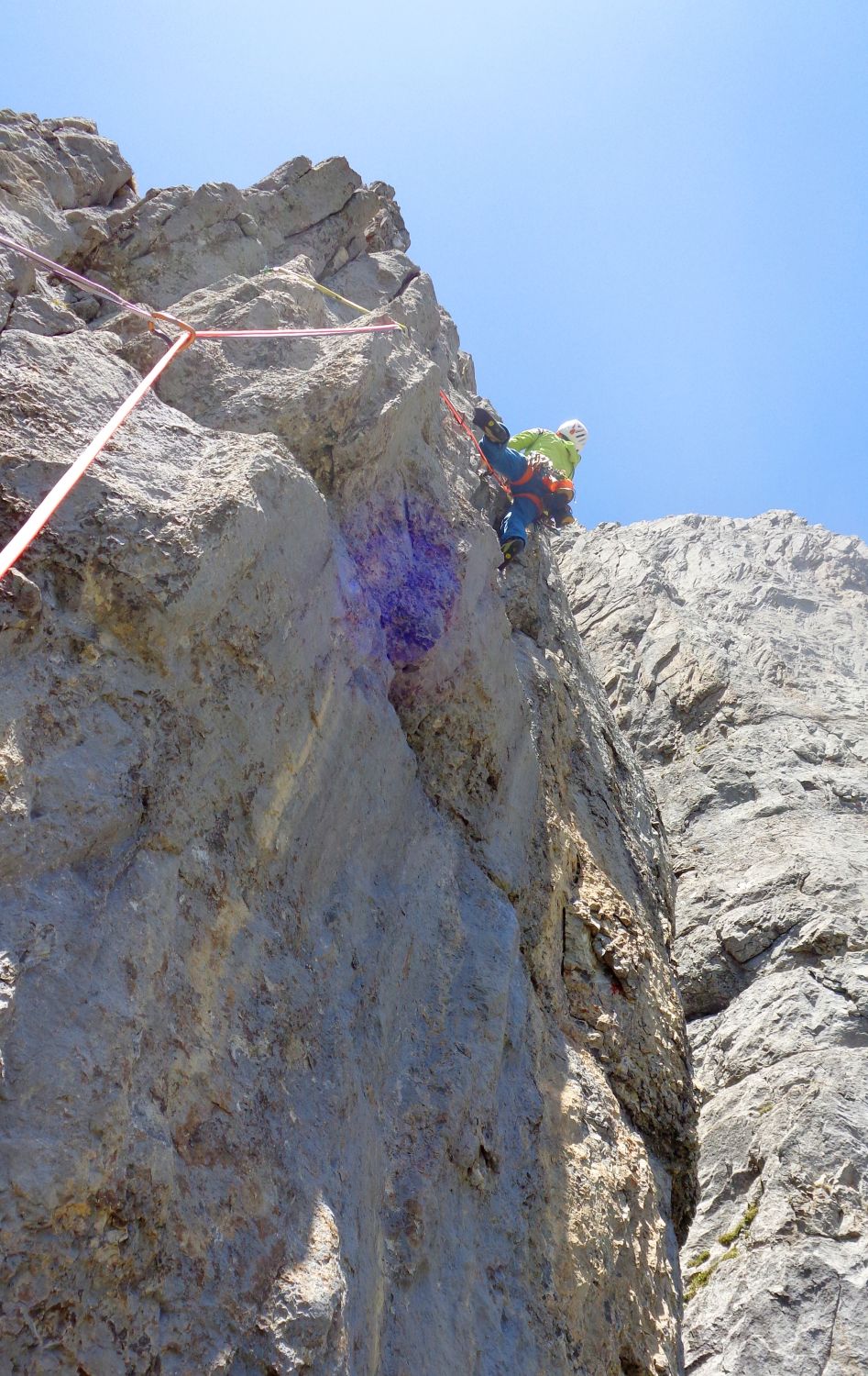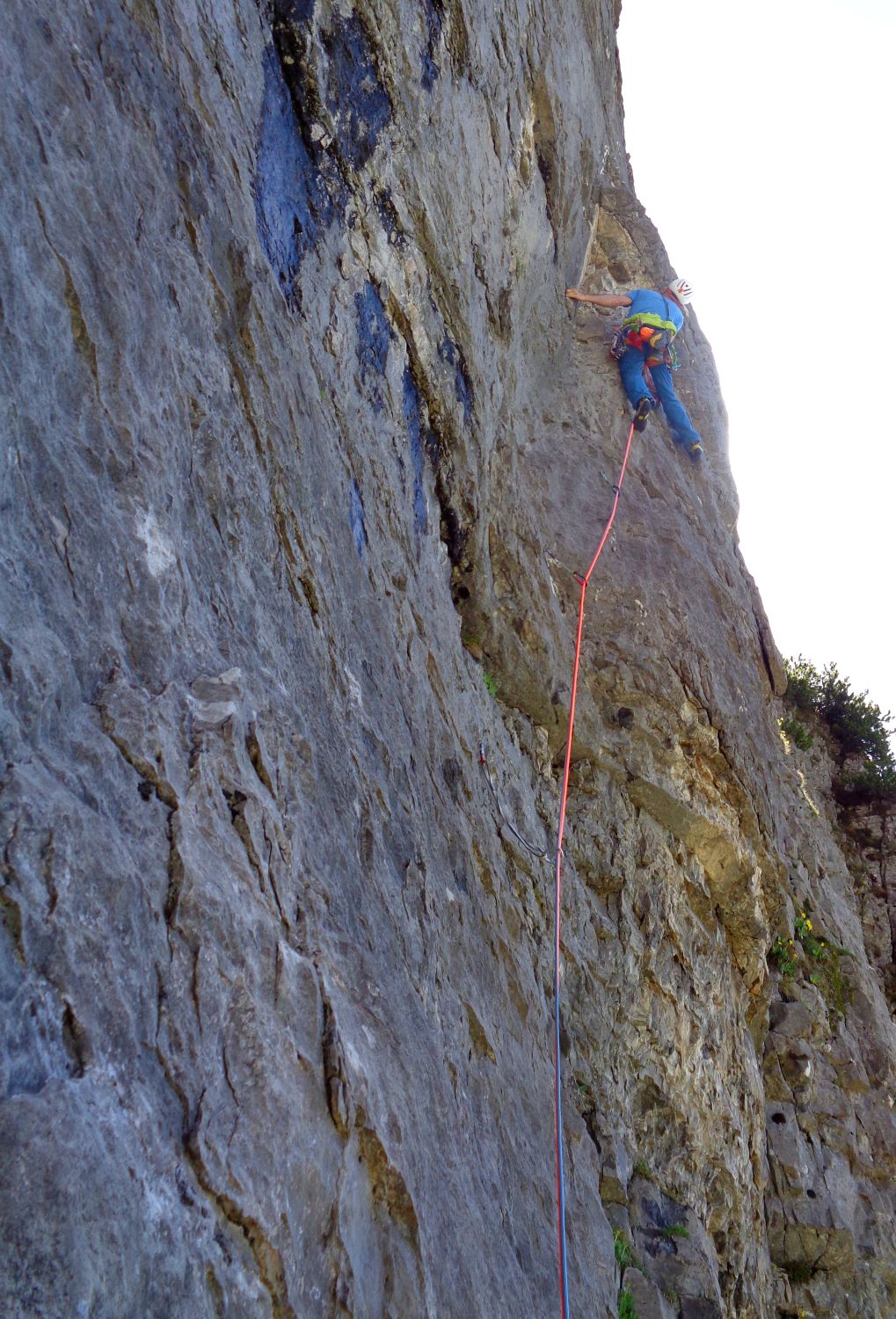 Ziemlich einsam: es sieht aus, wie wenn die Route einmal pro Jahr geklettert wird. Alles ist hervorragend rauh.