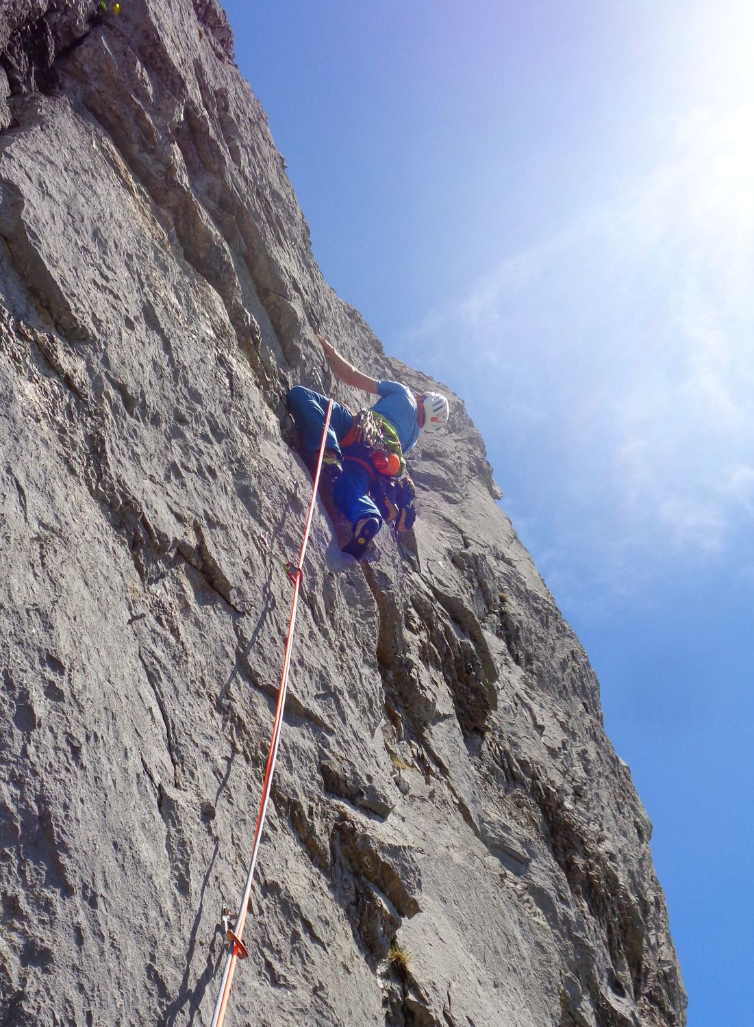 Die Route ist deutlich besser gesichert und hat besseren Fels als die "Etter direkt" (20 m weiter links).