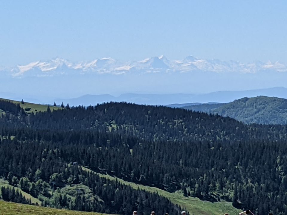Sonnig, im Tal warm, oben angenehm, Wege in bestem Zustand, in Bärental und oben auf dem Feldberg viel los. Gegenseitige Rücksicht notwendig. Prima Alpensicht.