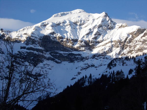 In der Morgenberghorn Südwand sind infolge der starken Sonneneinstrahlung mehrere Wächten abgebrochen. Daraus entstanden Nasssschnee- Lawinen.