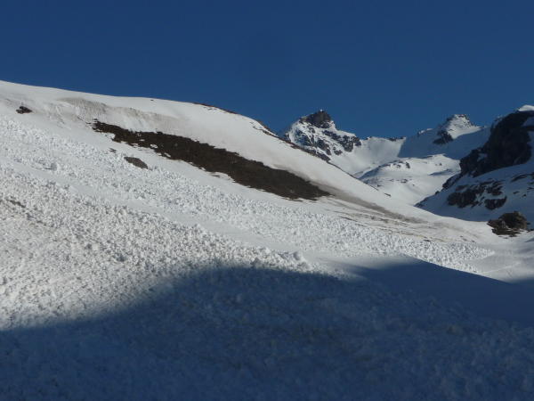Die größeren Lawinen unter dem Piz Bardella sind schon abgegangen.