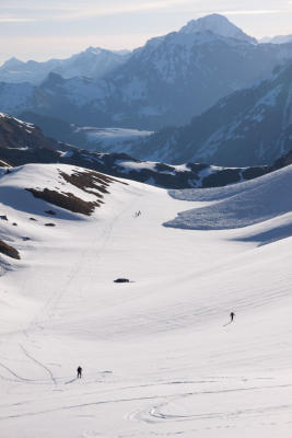 Wildhornhütte Frühlingsschlaf. Kein Gaffi. Dafür eins bei Gfellers im Iffigen - sie bereiten vor für die Eröffnung ab 19. Mai. Brunch sei sehr lecker dort...