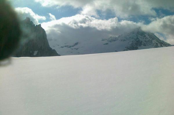 Im mittleren Teil ca. 5cm Regenkruste auf schwerem Schnee, richtig gruslig zu fahren.