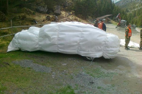 Dank an das Militär für's Auto-Verpacken zum Schutz gegen Split beim Helilanden am Parkplatz (Bild!)und an den zweiten Alleingängerkollegen für's Spuren im Gipfelbereich.