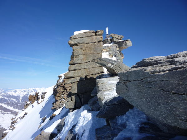 Dank Wochentag & geschlossener Hütte(n) nicht der übliche Massenantrag. Nette Gesellschaft im Winterraum, am Gipfel allein, insgesamt machten heute ca. 10 - 14 Personen den Gipfel. Winterraum des Rif. Vit. Emanuelle wochentags offen, kein Gas, kein Ofen, daher eher frostige Übernachtungsmöglichkeit. Nach Auskunft eines anderen Tourengängers ist Winterraum des Rif. Chabod zu bevorzugen, da Ofen vorhanden und insgesamt sehr gemütlich. Rif. Emanuelle kann auch spät am abend noch gefahrlos angesteuert werden, keine Schneerutschgefahr. Für genussvolle Abfahrt vom Gipfel besser Abfahrtszeit gegen Mittag planen, vorher eher ruppig.