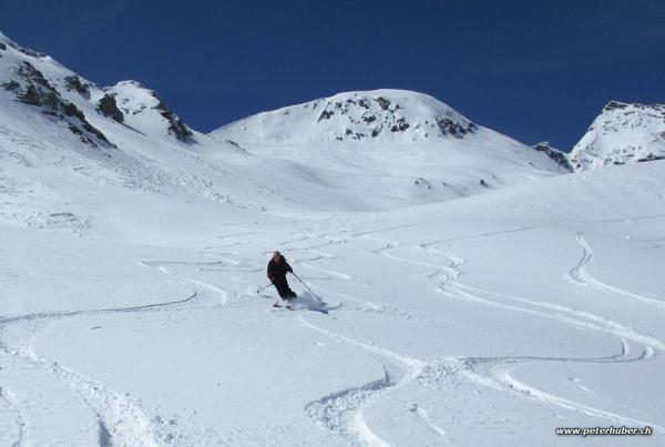 Abfahrt in den Mulden mit Pulverschnee super. Heute waren recht viele Leute unterwegs.