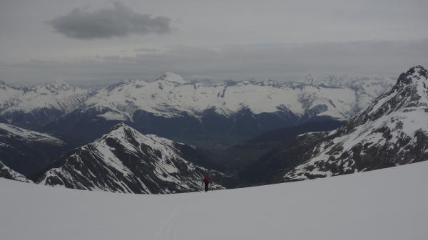 Gipfel wurde dann nördlich umrundet, und Abfahrt zwischen Süd-Westecke und dem Grat, der nach Süden zur Cima di Camadra zieht. Querung südlich dorthin sieht problemlos aus.