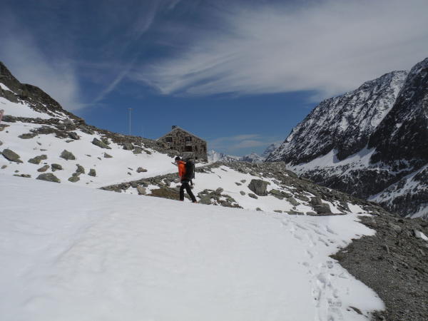 Zustieg von Belalp(Ruftaxi mit Vorreservation ab Blatten 8.50Uhr) entlang Sommerweg mit einigen Schneefeldtraversen(heikel),über Moräne hoch und Abstieg auf Gletscher(Fixseil gut,Achtung Steinschlag,über Gletscher auf linker Seite noch durchgängig bis Leiteraufstieg Hütte(mit viel Rumlümeln und Schlärpele 5,5 Std.)