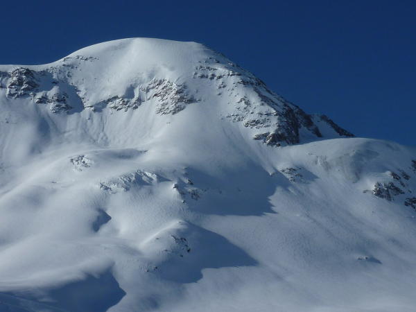 unten noch tiefer Schnee der sich nach oben hin wg starkem Wind schon super verfestigt hat.