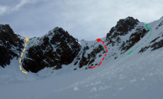 Aufstieg bis Juzfad,siehe Eintrag Bärenhorn von heute.Wir wählten heute das mittlere Couloir zum Grat hinauf. Mit Steigeisen war es recht gut zu begehen.Ins Schwitzen kamen wir dennoch.Die Abfahrt durch das südliche Couloir erfolgt auf den Skiern.Oben reicht es für ein paar Schwünge, unten rutschten wir über die Lawinenschollen. Die Abfahrt bis Rossbiel war genial.Ab da wurde es schwerer, trotzdem liessen sich anständige Schwünge ziehen bis zum Talboden.