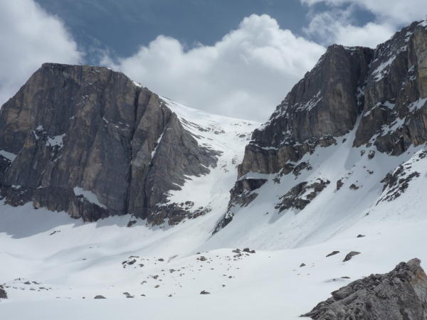 Ich bin dann noch während eines Schneeschauers zum Barrhorn aufgestiegen, dann setzte der Föhn ein und ermöglichte eine meist sonnige Abfahrt durchs NW-Couloir (siehe Foto).