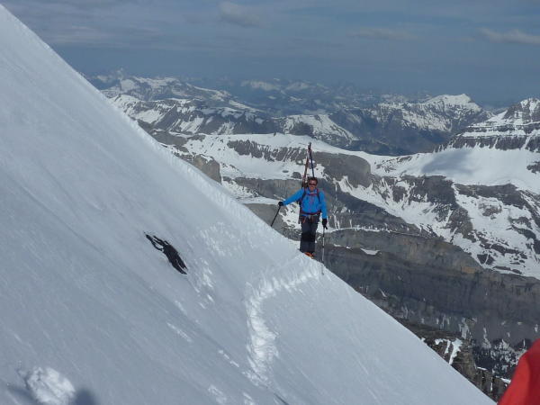 Meteo CH hatte uns für den Samstag gutes Wetter vorrausgesagt. Leider am Morgen bewölkt und bis zum Gipfel 2 mal Schneeschauer und Nebel. Temperatur im unteren Teil plus 4 Grad. Schnee unten etwas weich aber nach oben immer besser. Die letzten 300hm sind wir zu Fuss durch Rinnen und über Platten. Z.T wenig Schnee auf den Felsen. Hier sehr heikel. Konnten im Abstieg aber ausweichen. Abfahrt von Gipfel wäre auch möglich gewesen. Die Abfahrt (12 Uhr) ist der Hammer gewesen. Noch genügend Schnee bis Spittelmatte. Von dort die Ski getragen bis unterhalb Sunnbüel. Die Bahn fährt am 8 und 17 Uhr. Aus diesem Grund Fussabstieg nach Kandersteg (ca. 1 Std.). Es kann unterhalb Sunbüel noch ein wengig abgefahren werden.