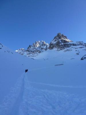 Sehr viel Neuschnee und starke zum teil nicht sichtbare Verfrachtungen. Gipfelhang sehr heikel eingeschätzt, darum umgekehrt.