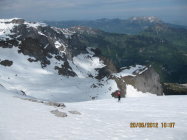 Gemessen an der Höhe und Jahreszeit waren die Verhältnisse tiptop. Von unten bis oben und zurück firnartig, leicht angetaut, nicht einsinkend und grösstenteils guter Grip.