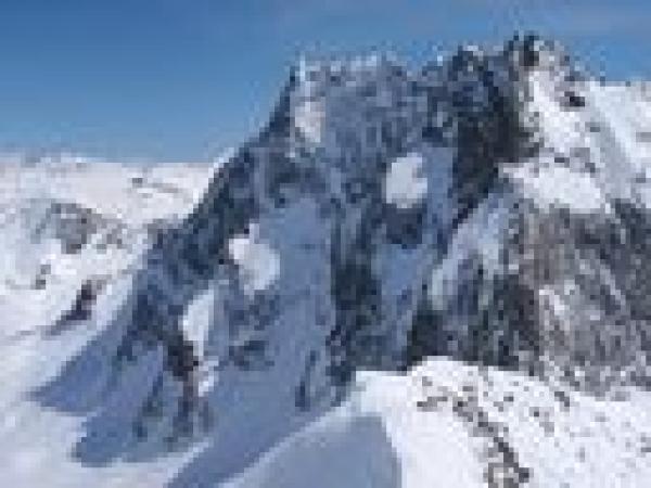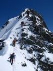 Der Grat bot abwechselnde winterliche Kletterei mit Firngratstücken, die im Sommer schuttig sein werden.