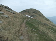 Danach nun den Südgrat hinab zum Rivolte-Sattel und vielseitige (T4, eine Kletterpassage K1) Grattour über Felsblöcke (sieht von Ferne schwieriger aus als es ist) zum Monte Segor (2080 m), wo man wieder auf den Kammweg des Sentiero Lago di Lugano trifft, der zum Gazzirola (2116 m) führt.